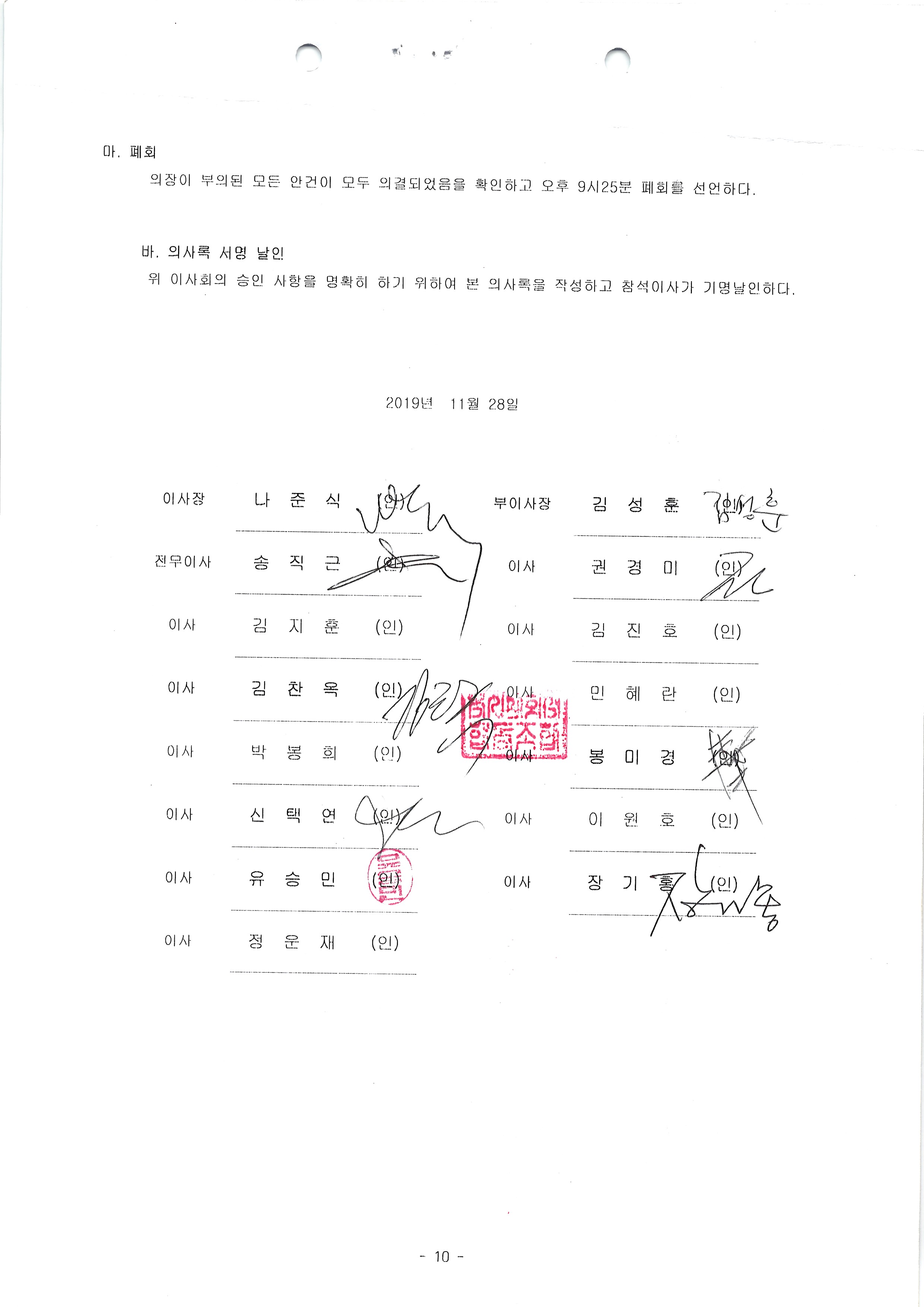 [2019-10] 정기이사회 결과보고