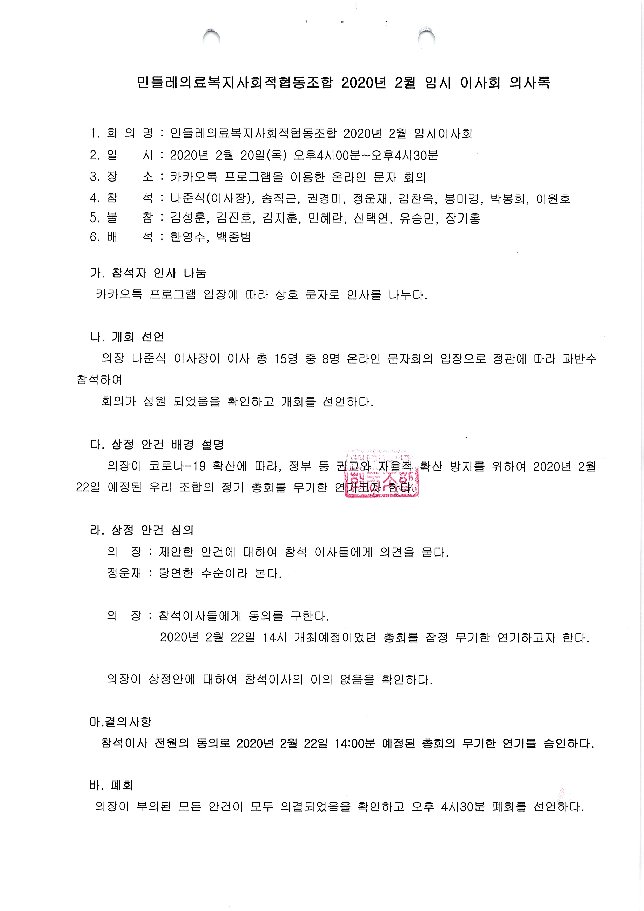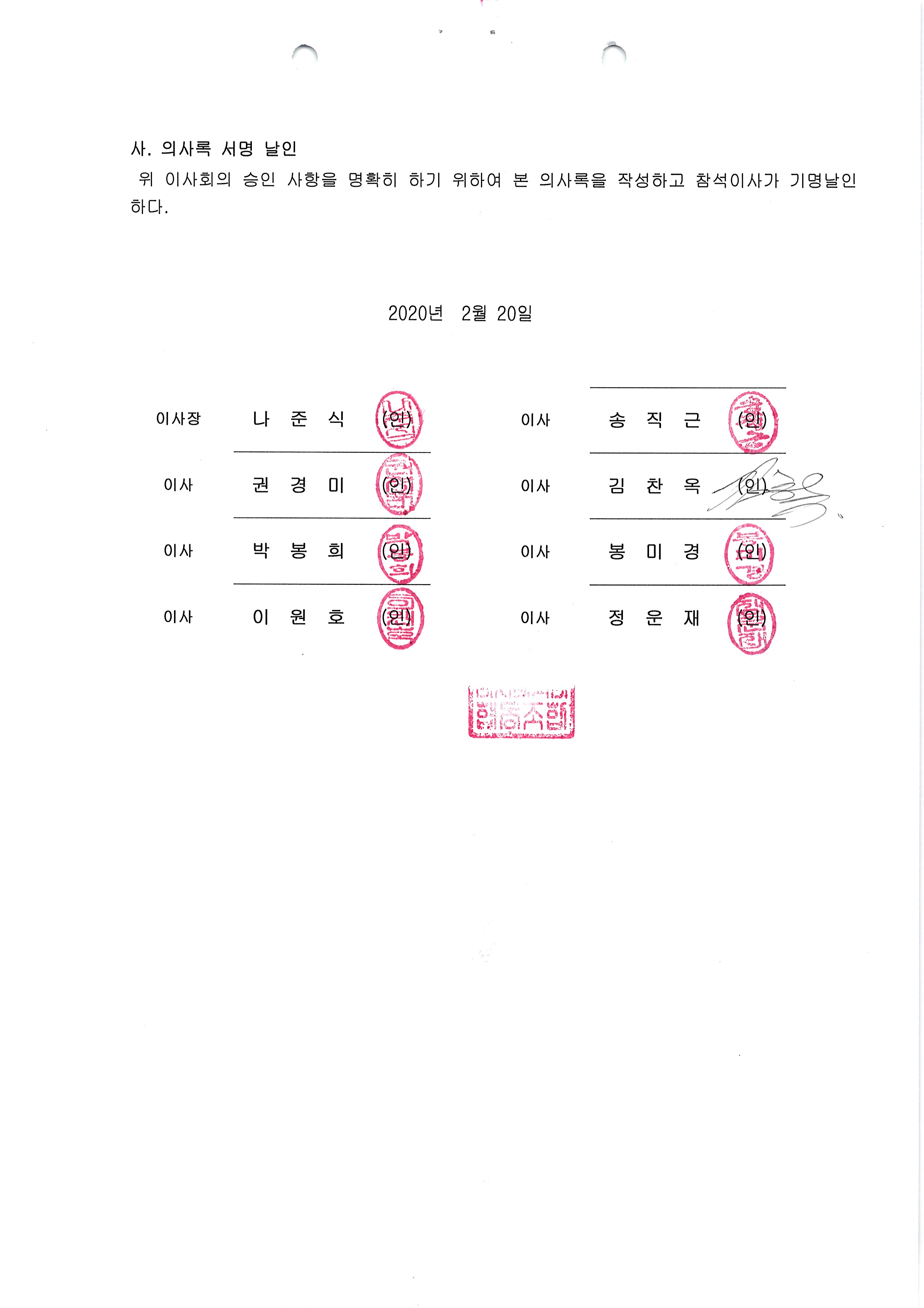 [2020-02] 임시이사회 결과보고