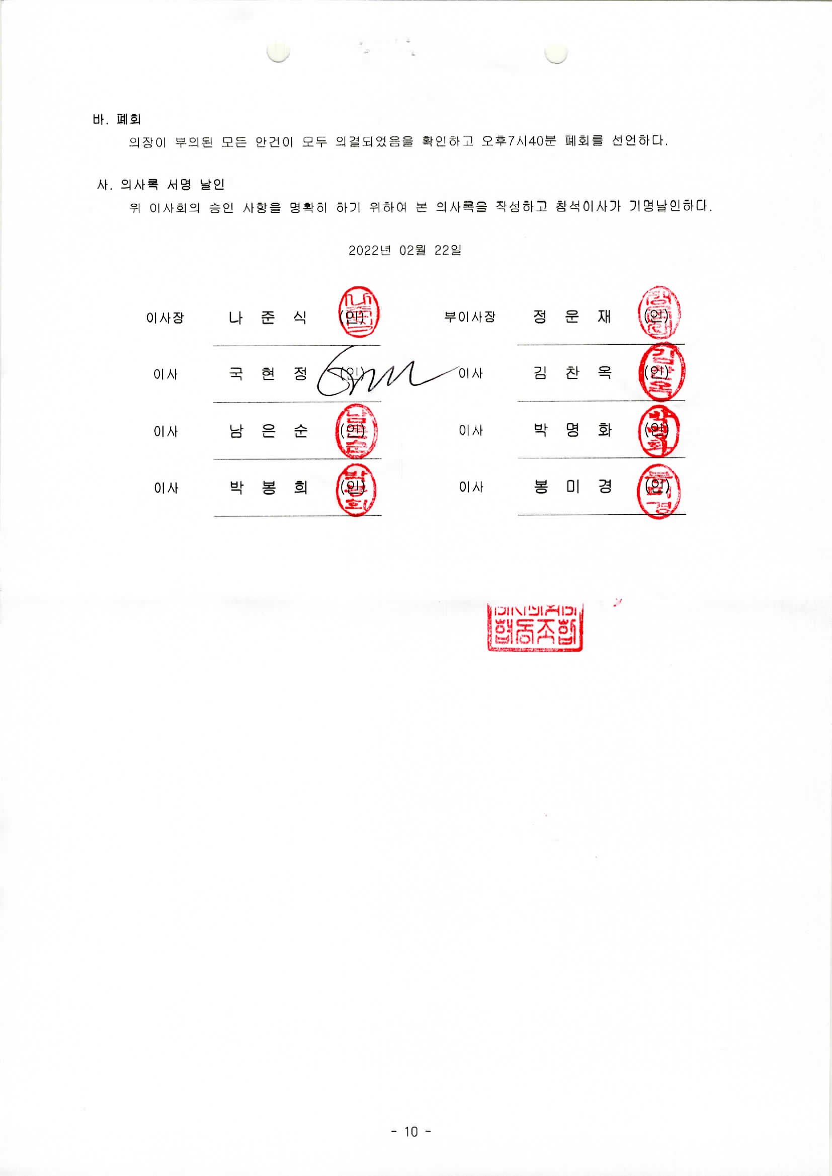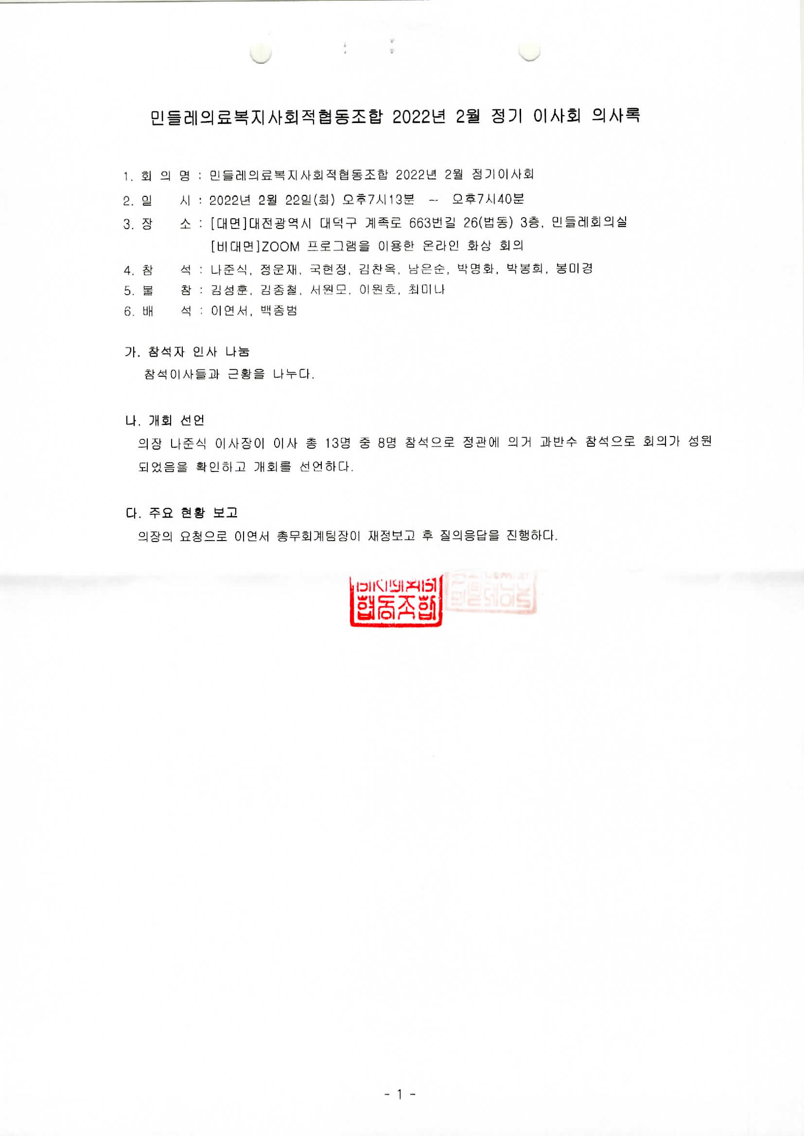 [2022-02] 정기이사회 결과보고