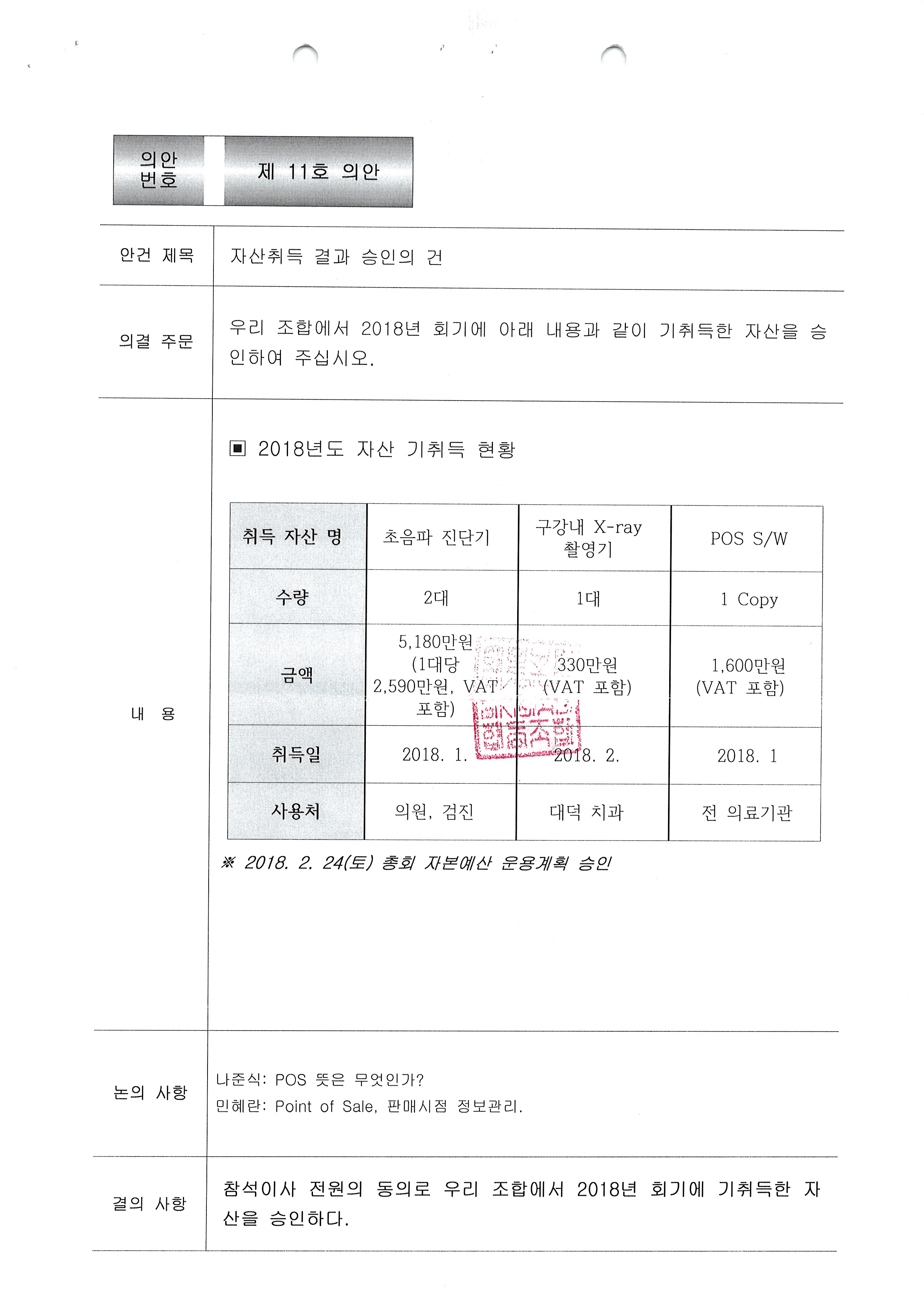 [2018-02] 임시이사회 결과보고