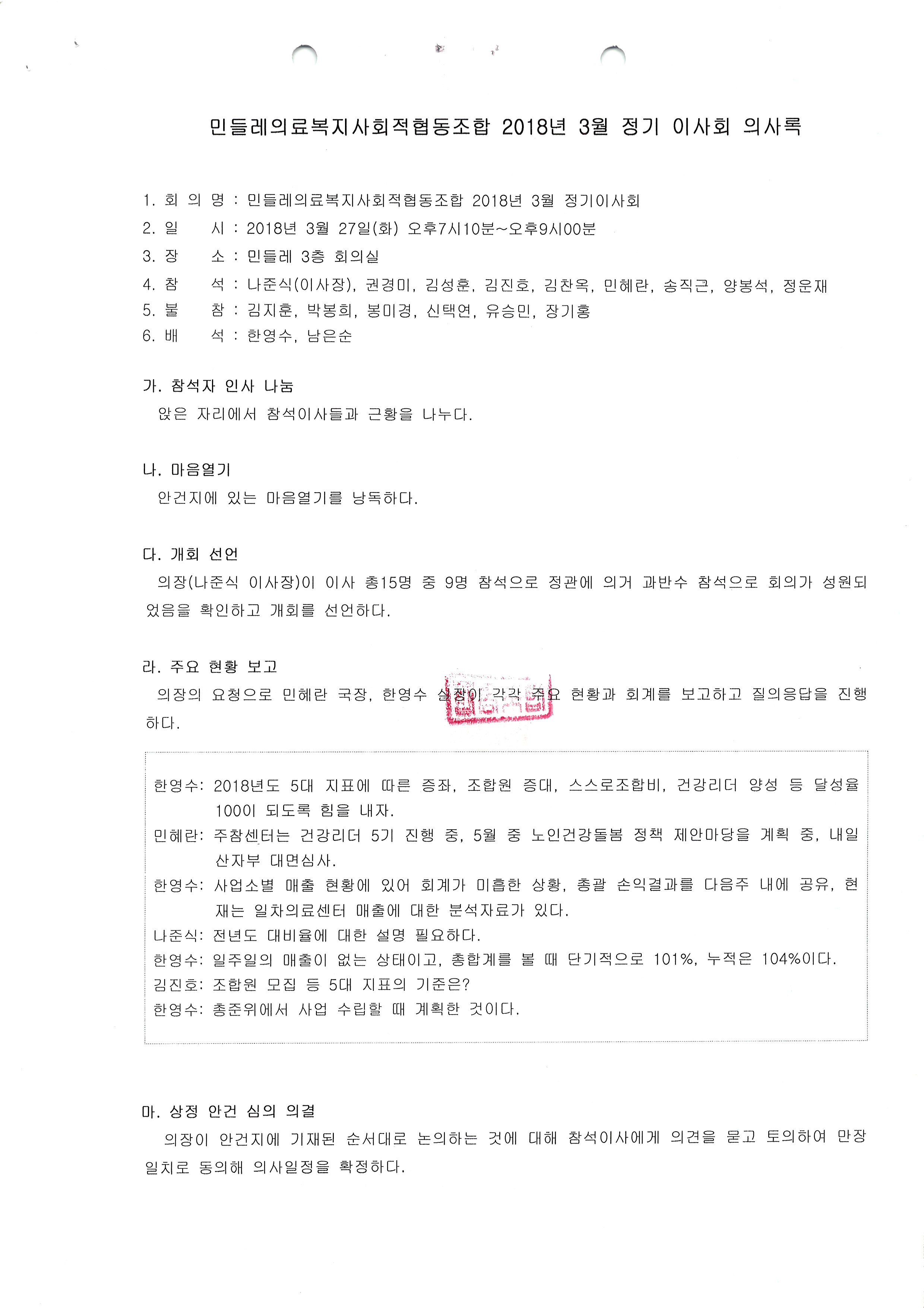 [2018-03] 정기이사회 결과보고
