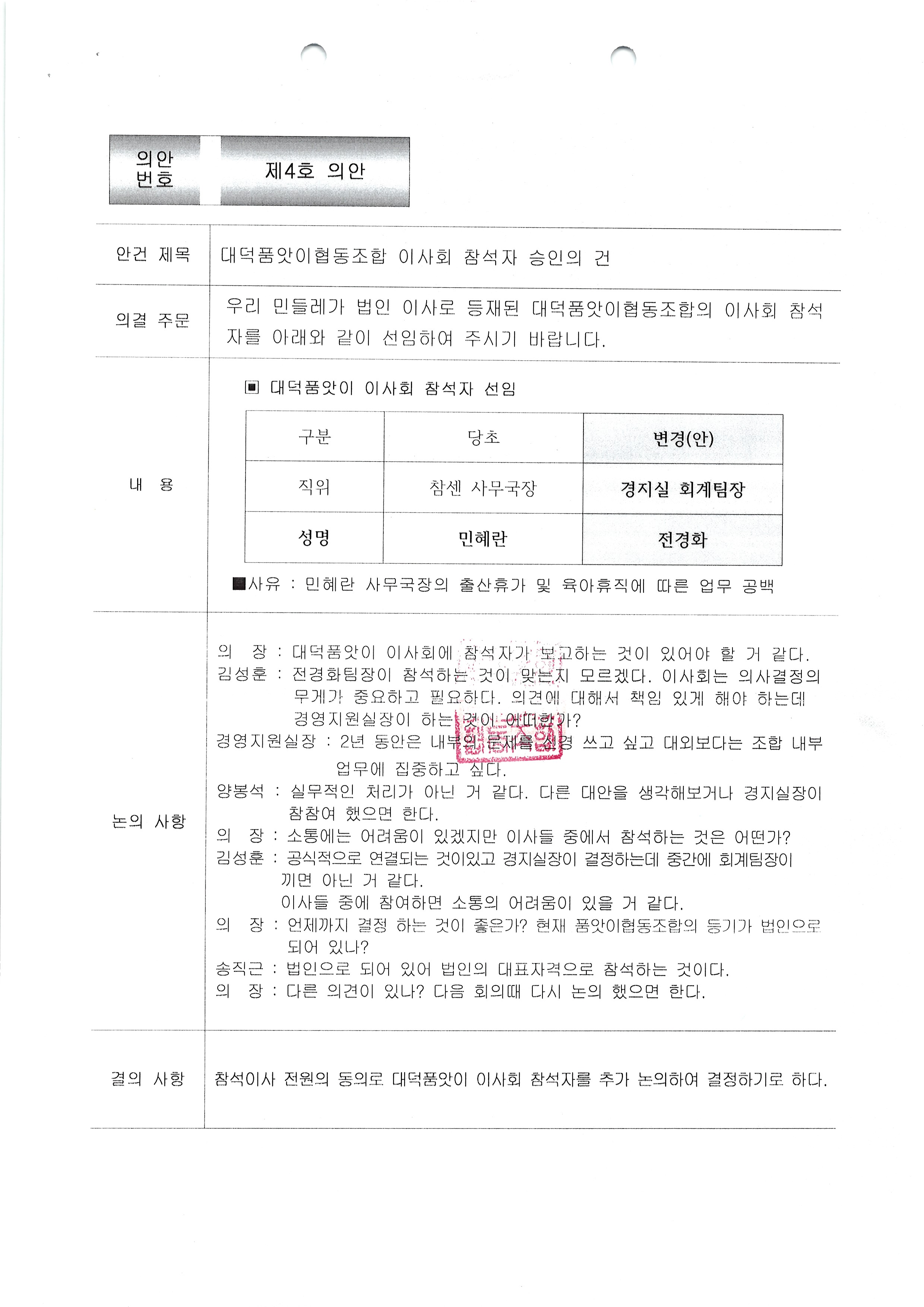 이사회회의록