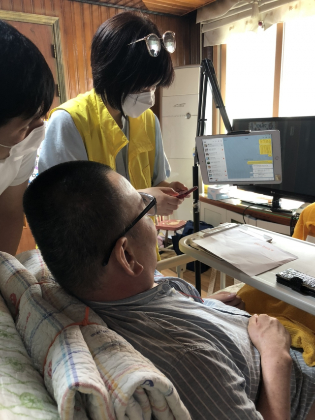 ▲ 바깥 세상과 소통을 위한 작업치료중인 모습. ⓒ박지영