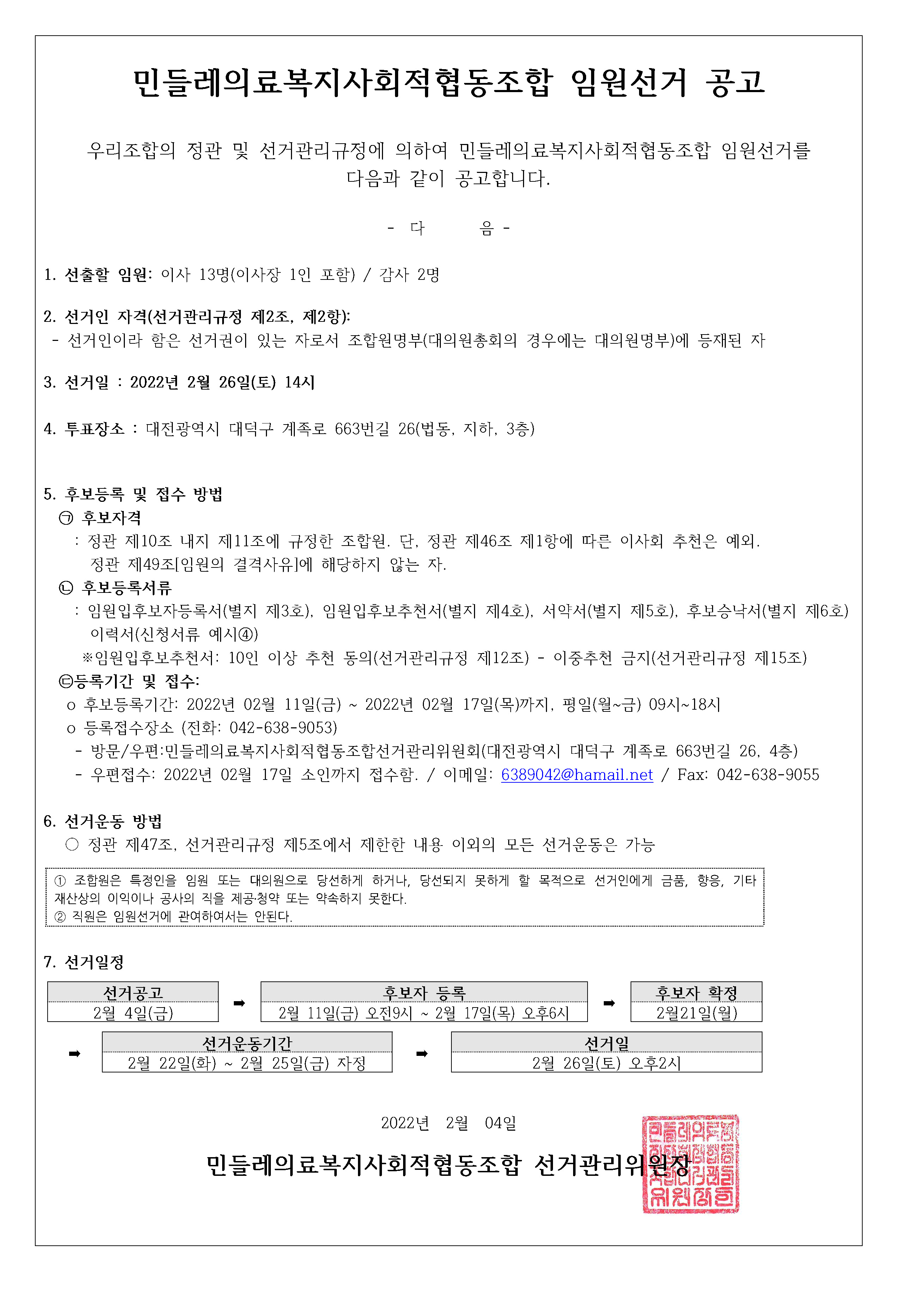 2022년 임원선거 공고