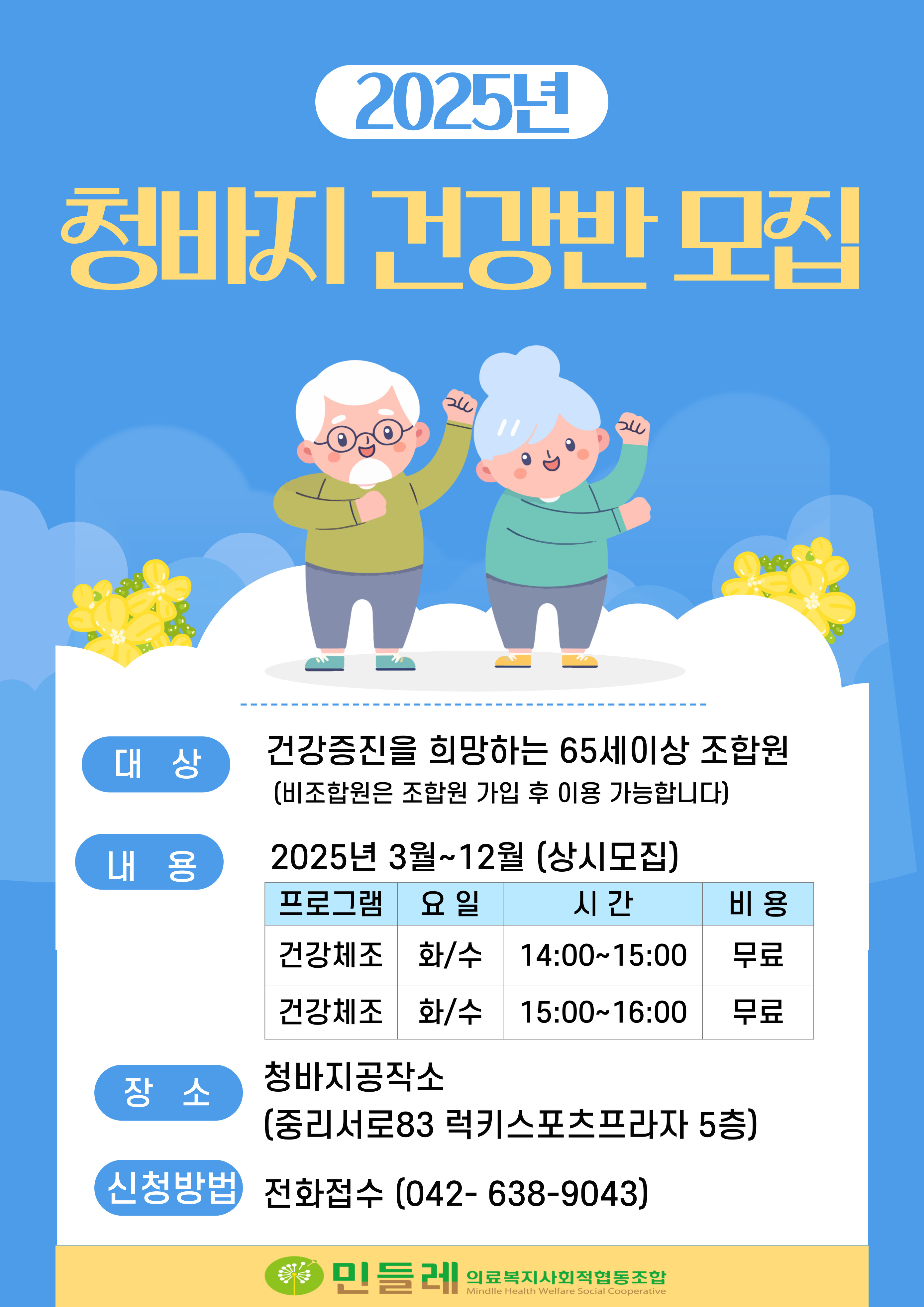 청바지건강반은 건강증진을 희망하는 65세 이상인 조합원님을 대상으로