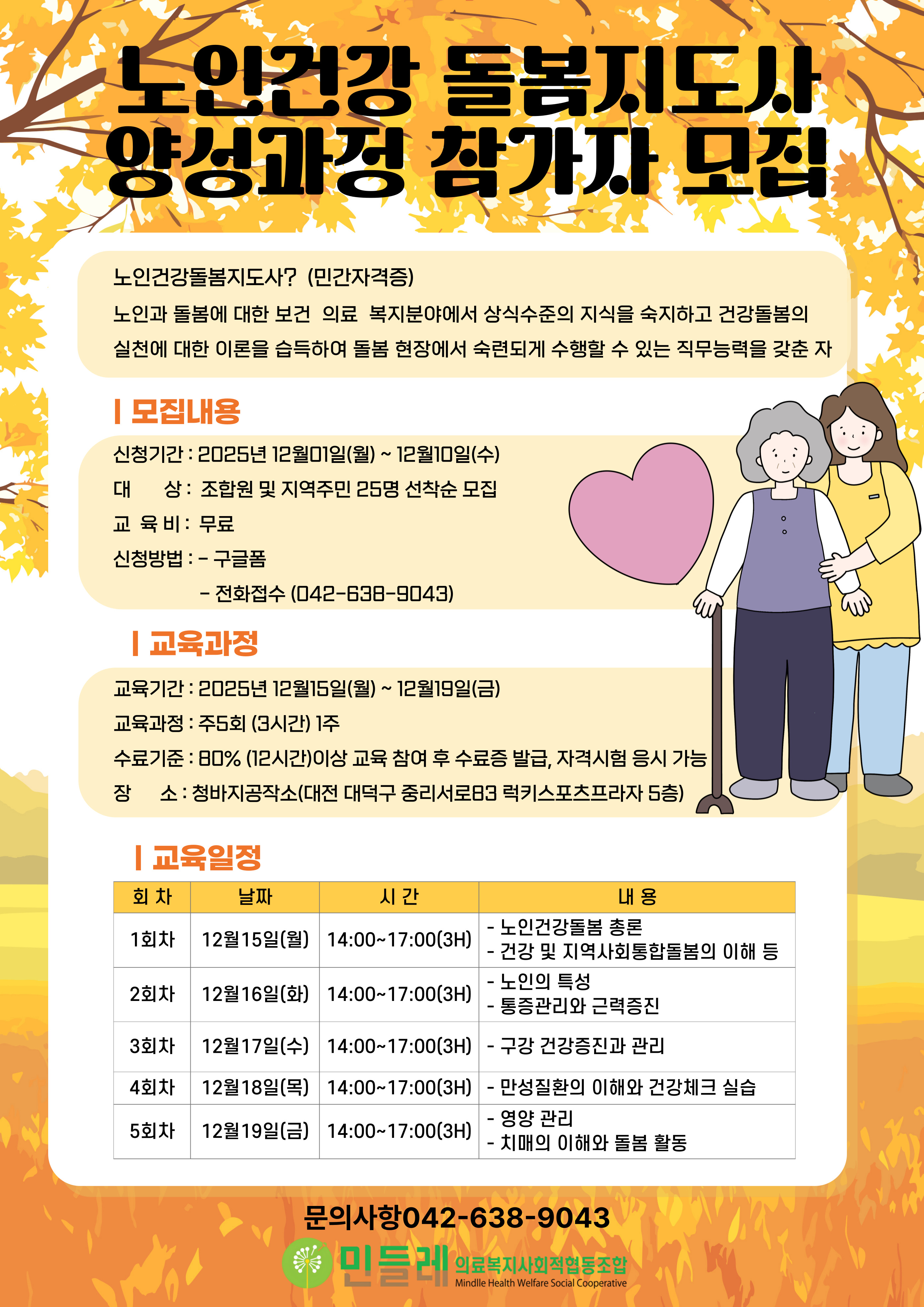 노인건강돌봄지도사에 관심 있는 분들의 많은 참여를 기다립니다.
