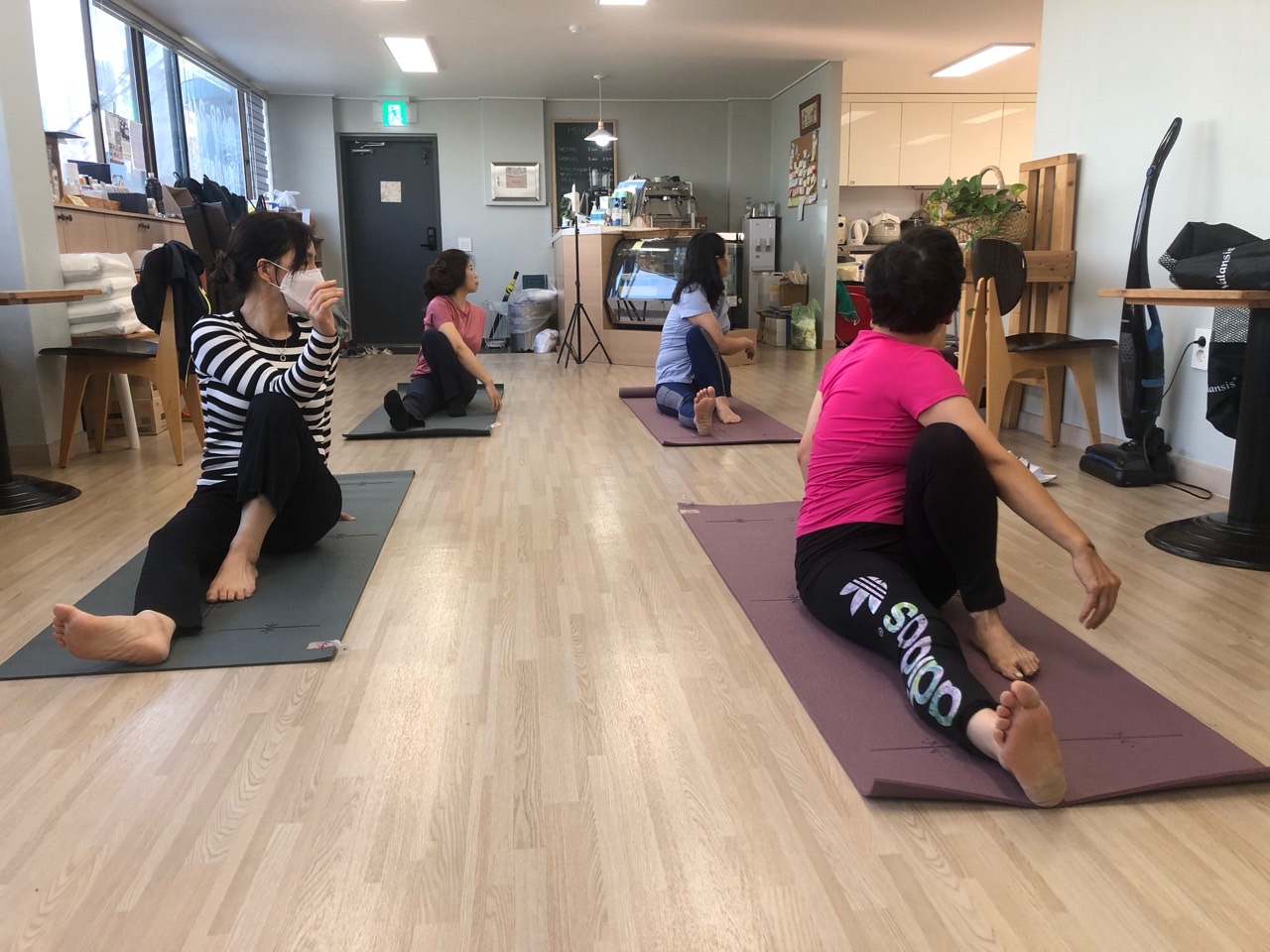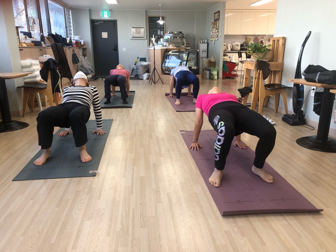 아쉬탕가 전통요가 중..태양경배자세 및 스탠딩요가동작과 싯팅요가동작을 하였습니다.