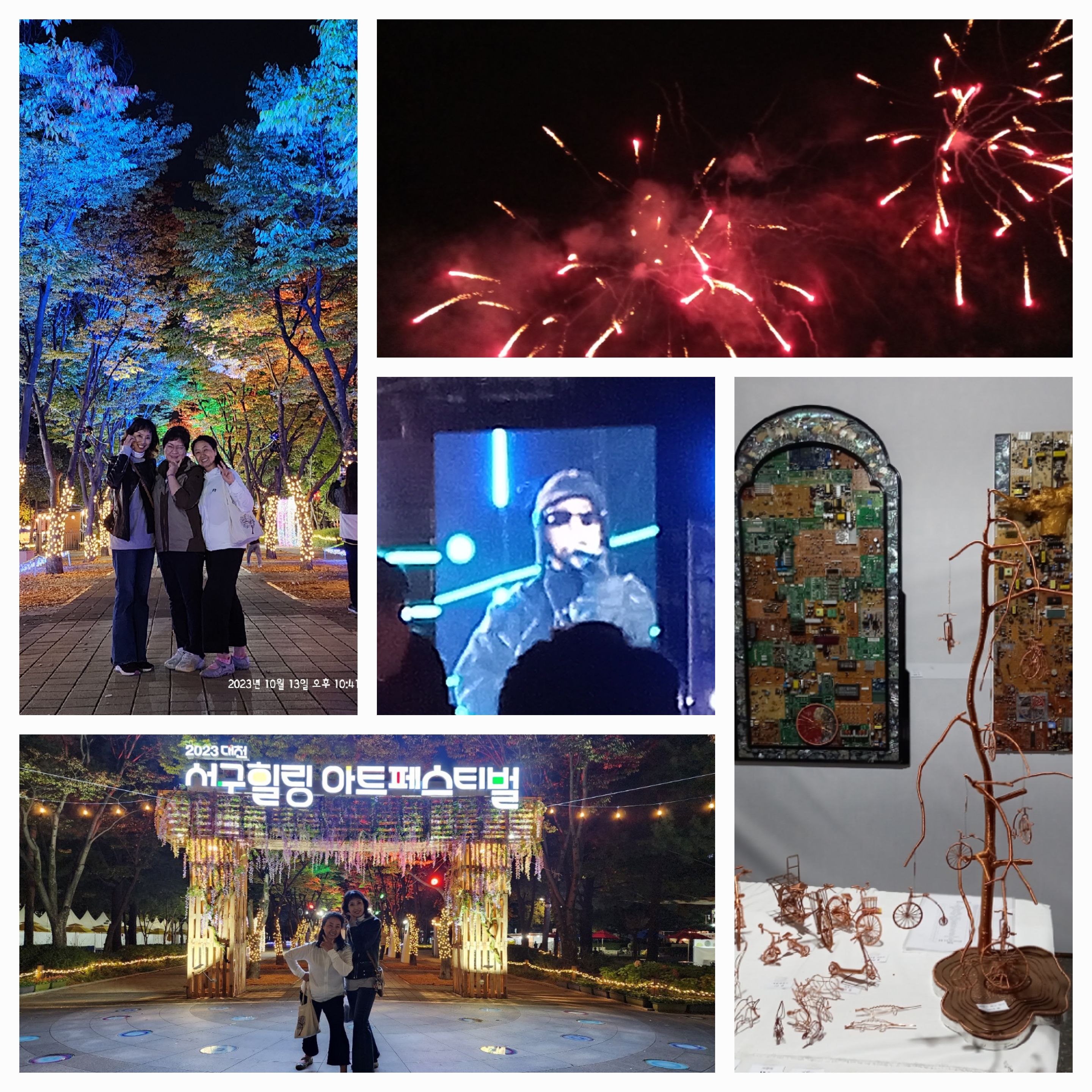 10/13양윤자 서지윤 장은영,서구힐링아트페스티발에가서 거미 에픽하이공연 ,불꽃놀이, 루미나리길 산책 ,공예품 구경 10/27동춘당걷고 또봉이에서 치맥.저녁걷기 종료함