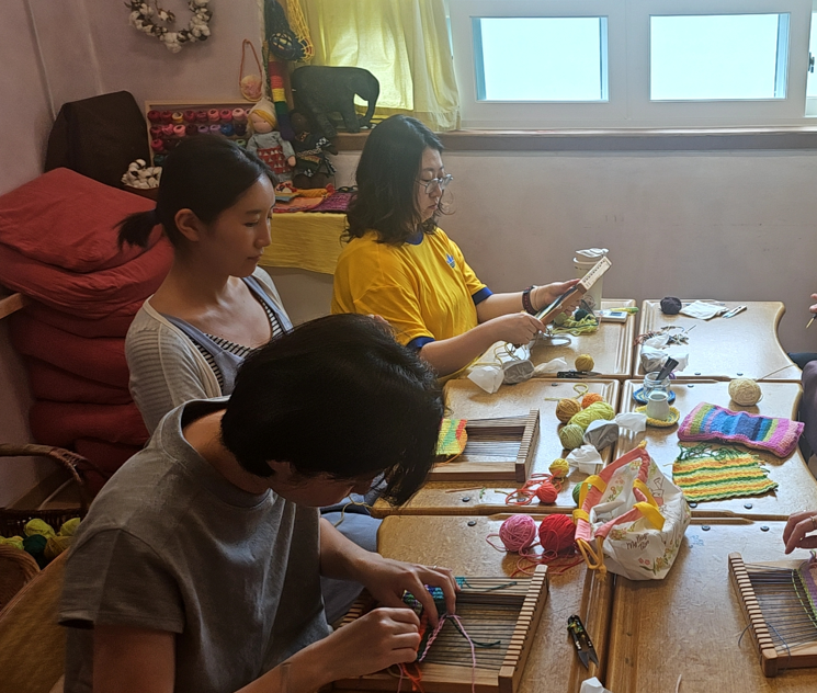 오늘은 도착 시간이 다들 늦어져서 채이 어머님이 준비해 주신 간식 먹으면서 쉬엄쉬엄 모임을 시작했습니다. 대부분 직조 작업은 끝을 내고, 안감 작업을 들어갔는데, 안감 디자인을 구상하는게 쉽지 않습니다. 고민은 짧게 빨리 선택하는 분도 있고, 정 반대인 분들도 있습니다. 각자의 성향에 맞게 시작된 작업이지만 각자의 아이디어를 보태어 더 나은 방법을 찾아가면 모임을 마쳤습니다.